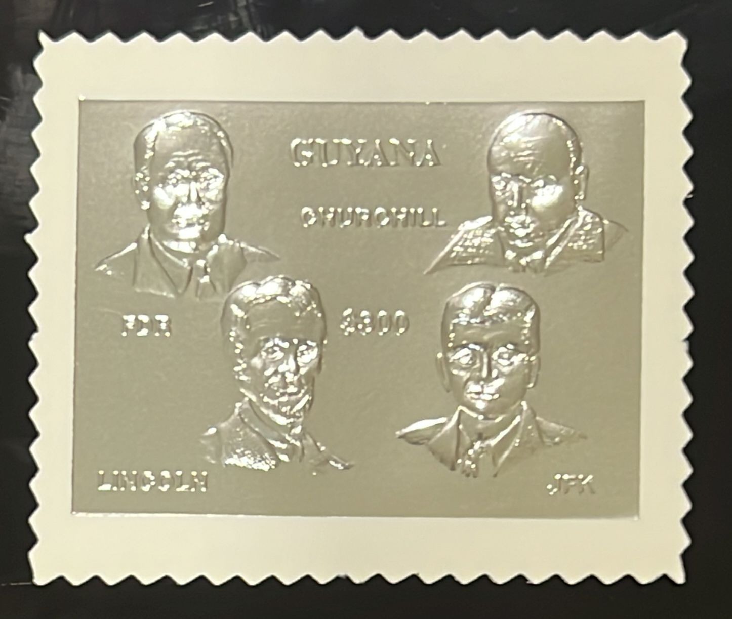 Guyana 1996 Famous people Churchill Kennedy Abraham Lincoln SILVER FOIL M/s Limited quantity issued each numbered on back
