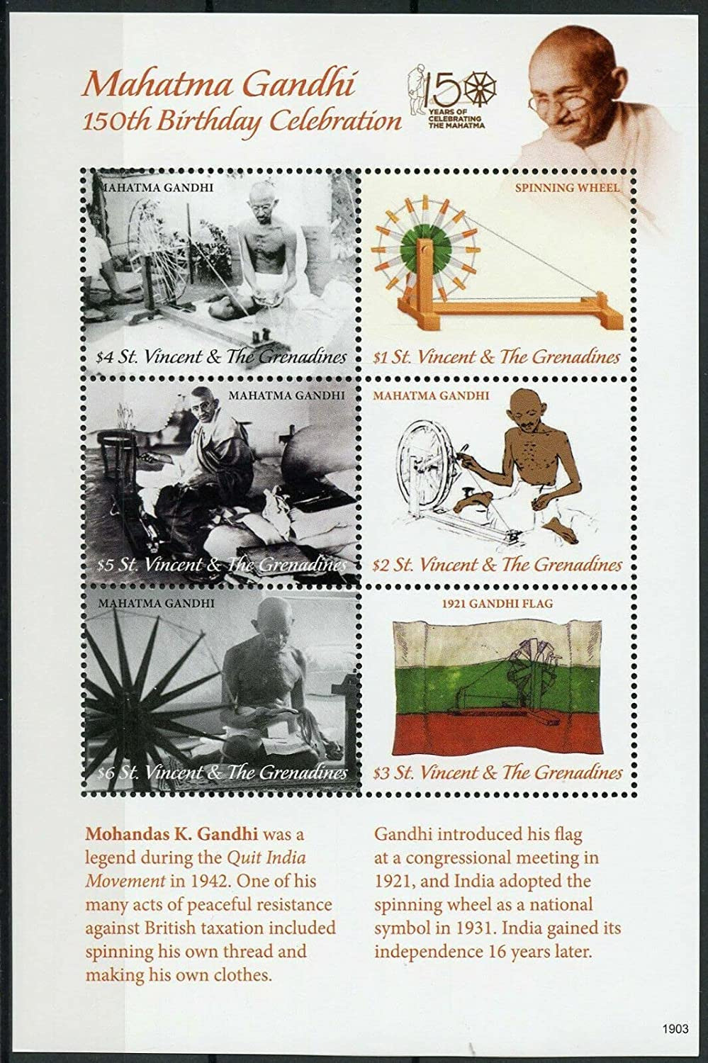 St.Vincent 2019 Mahatma Gandhi 150th Brithday Celebration Stamps M/S MNH