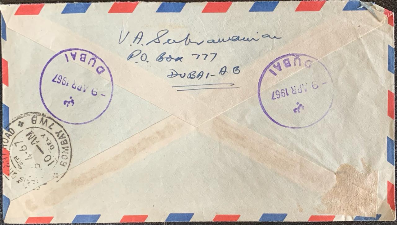 Dubai 1967 Registered Cover to Bombay India