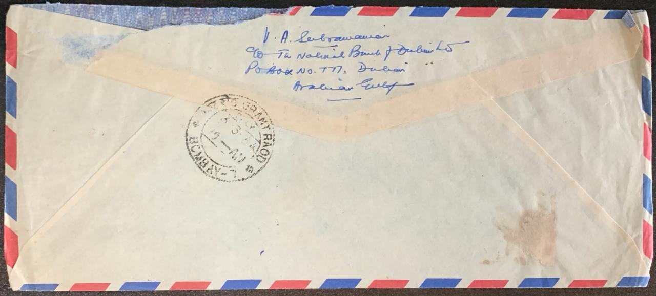 Dubai 1967 Registered Cover to Bombay India with Kennedy & Space Stamps