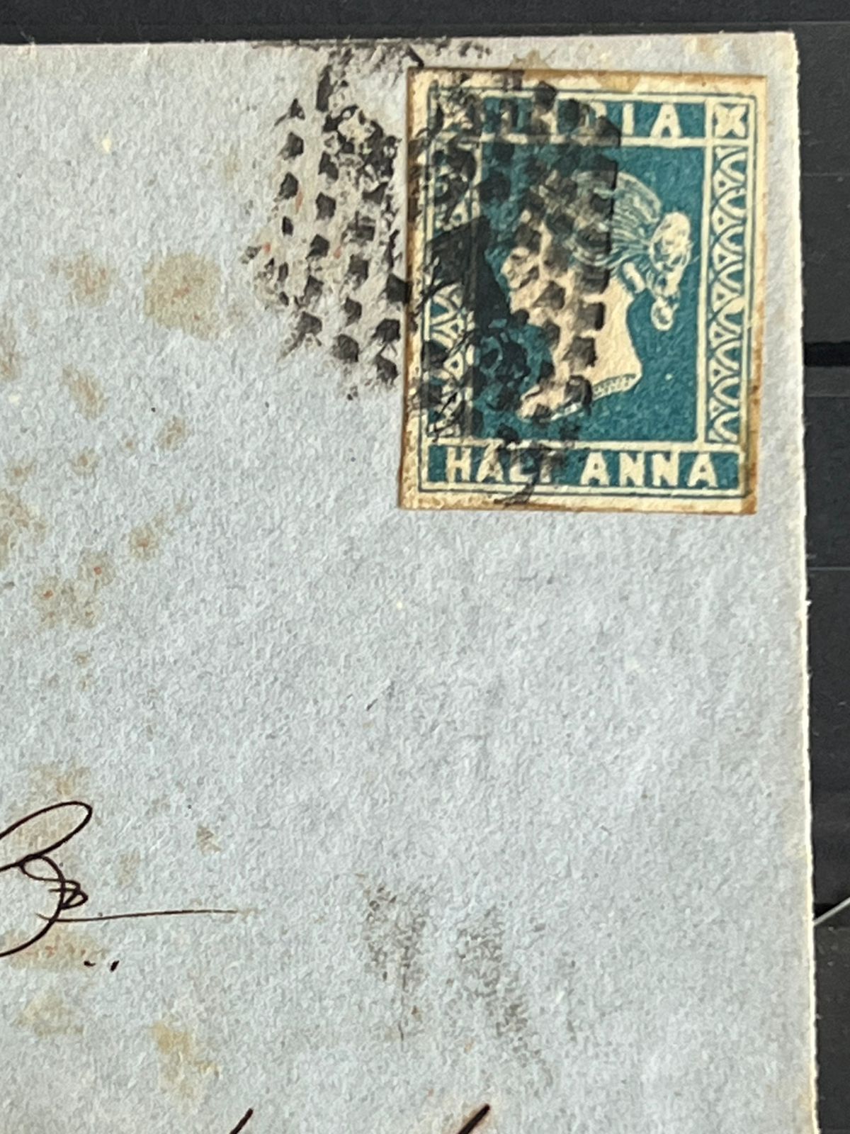 India 1854 QV 1/2a DIE III Greenish Blue on Cover to Secunderabad Rare