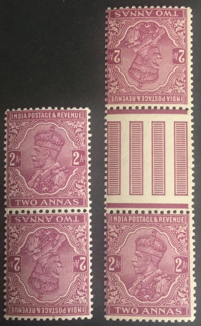 India 1926 KGV 2a 2nd Tete Beche of British India in both Formats ( Normal and with Gutter) Mint White Gum