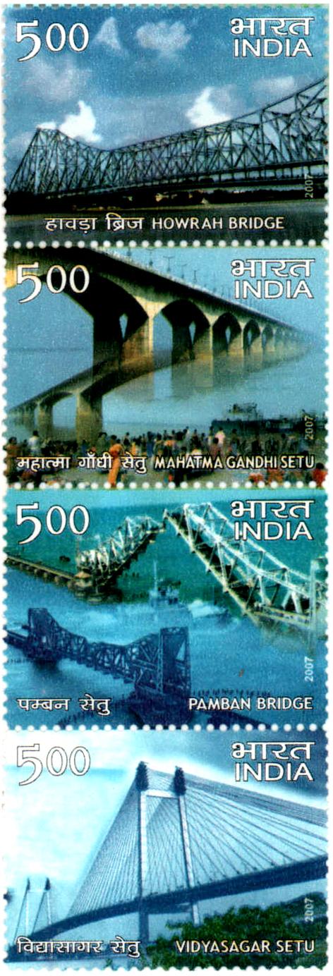 India 2007 Landmark Bridges of India Vertical Setenant MNH