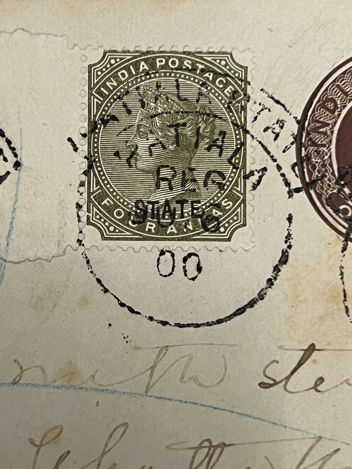 India Patiala State 1896 QV 4as ‘PATIALA’ Omitted ERROR SG 21a on Cover Very Rare