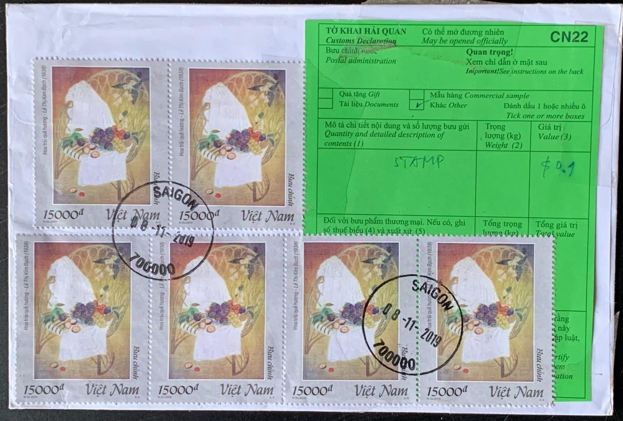 Vietnam 2019 Mahatma Gandhi IMPERF Stamp used Commercially on Registered Cover Rare